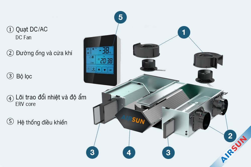 1. Máy cấp khí tươi thu hồi nhiệt AirSun ERV ESD 500